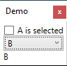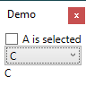 A while back I was working an a WPF project that involved a scenario like this. For some reason though, it suddenly stopped working properly. Applying the “error” to this demo, the TextBlock would still reflect whatever you select in the ComboBox. The CheckBox however, would not react. And checking the CheckBox would not set the ComboBox or TextBlock to A anymore.